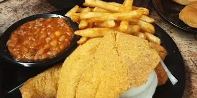 Casual eatery offering burgers, seafood, fried chicken and other classics. 14 minutes away from Knightfall Cabin.
