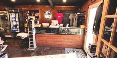 Bait shop stocking live worms and other tackle, plus slots and a bar.