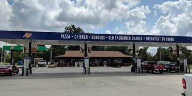 Convenience store and gas station offering fried catfish, cheeseburgers, and other light fare, plus strawberry shakes.